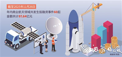 IT桔子数据显示,2023年,商业航天领域共发生投融资事件20起,金额共计47.75亿元;2024年,商业航天领域共发生投融资事件34起,金额共计140.21亿元;截至2025年11月26日,年内商业航天领域共发生投融资事件60起,金额共计97.64亿元。