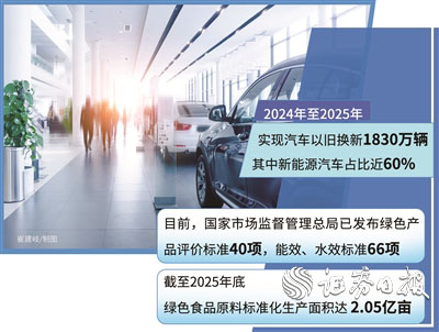 盛秋平表示,商务部把落实大规模消费品以旧换新政策作为推动绿色消费的重要机遇。2024年至2025年,实现汽车以旧换新1830万辆,其中新能源汽车占比近60%。实现家电以旧换新1.92亿台,其中一级能效(水效)占比达到了90%以上,以旧换新政策带动消费品销售额3.92万亿元,惠及消费者4.94亿人次。新能源汽车、绿色智能家电等绿色商品消费增长带动绿色消费市场规模稳步扩大,绿色产品供给更加丰富,绿色消费模式不断创新,绿色消费环境持续优化。