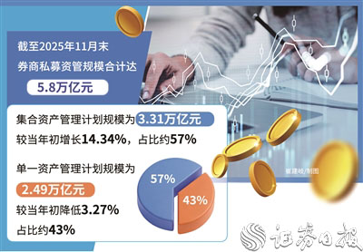 2025年以来,券商私募资管规模整体稳中有升。中国证券投资基金业协会发布的最新数据显示,截至2025年11月末,券商私募资管规模合计达5.8万亿元,创当年新高,较2025年初规模增加3311.63亿元,增幅为6.06%。