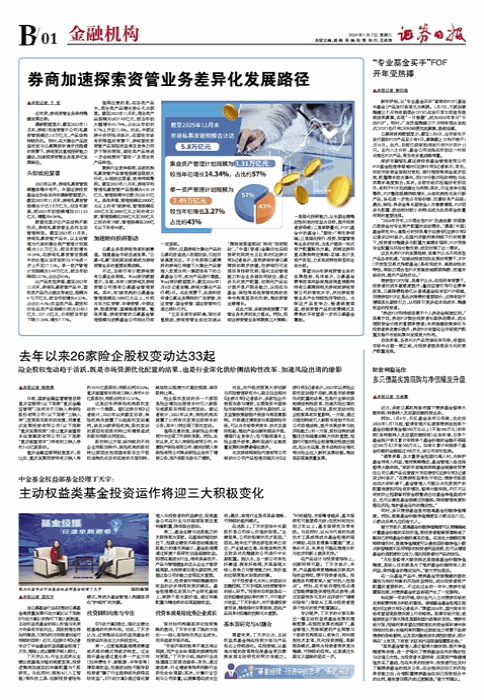 展望2026年券商资管业务的发展趋势,张洋表示,公募基金费率改革向纵深推进将直接影响持有公募牌照相关券商或券商资管公司的营收水平,并对券商资管业务产生持续性传导效应。为保证产品竞争力、畅通销售渠道,券商资管产品的收费模式及费率水平有望进一步向公募基金靠拢。