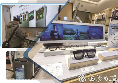 图①消费者正在选购智能产品 图②眼镜店内摆放的智能眼镜 图③家电卖场展示的以旧换新商品 郭冀川/摄