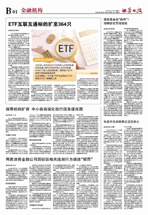 港交所近日发布公告,1月19日,共有98只ETF正式纳入北向沪股通和深股通(其中54只ETF调入北向沪股通、44只ETF调入北向深股通),同时有7只ETF被暂时移出陆股通名单。此次调整后,“ETF通”的产品总数由273只增至364只,增幅超三成。
