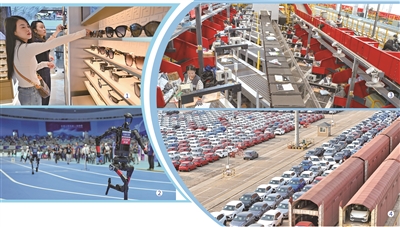图③智能快递分拣流水线 图④国产汽车等待装船出口 新华社供图