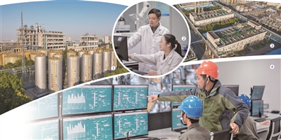 图①为硅烷中间体罐区 图②为产品检测实验室 图③为生产区鸟瞰图 图④为三氯氢硅车间中控室 公司供图