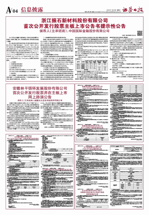 浙江振石新材料股份有限公司 首次公开发行股票主板上市公告书提示性公告