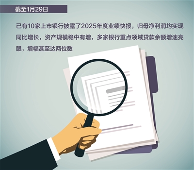近期,A股上市银行2025年度业绩快报密集出炉。截至1月29日记者发稿,已有10家上市银行披露了2025年度业绩快报,包括4家股份制银行,5家城商行,1家农商行。