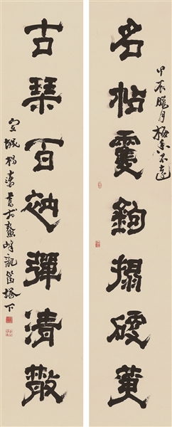 杨涛 隶书名帖古琴七言联 240×48cm 纸本 2024年