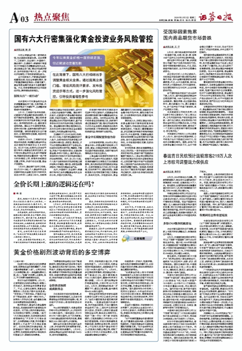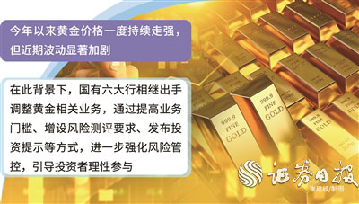 今年以来黄金价格一度持续走强,但近期波动显著加剧。在此背景下,工商银行、农业银行、中国银行、建设银行、交通银行、邮储银行等国有大行相继出手调整黄金相关业务,通过提高业务门槛、增设风险测评要求、发布投资提示等方式,进一步强化风险管控,引导投资者理性参与。
