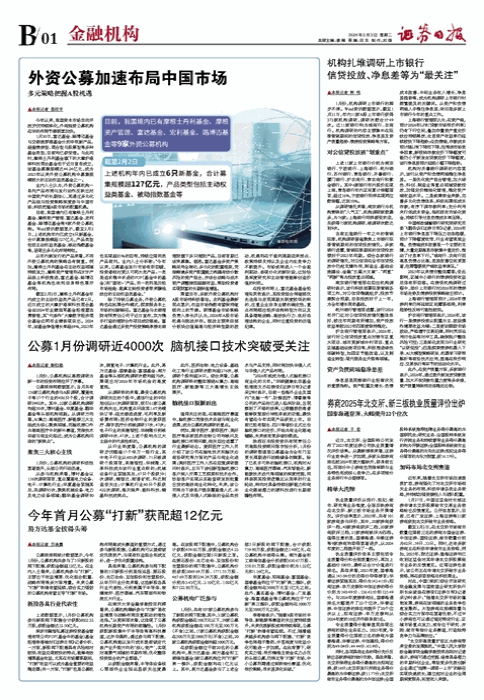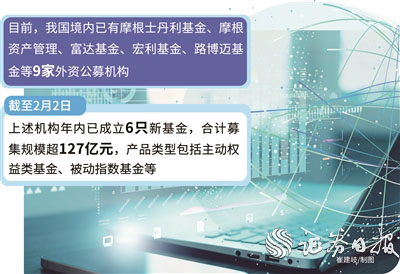 目前,我国境内已有摩根士丹利基金、摩根资产管理、富达基金、宏利基金、路博迈基金等9家外资公募机构。Wind资讯数据显示,截至2月2日,上述机构年内已成立6只新基金,合计募集规模超127亿元,产品类型包括主动权益类基金、被动指数基金等,呈现出多元化布局特征。