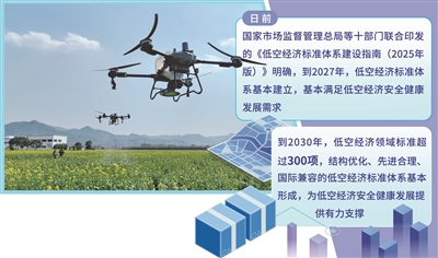 2月2日,国家市场监督管理总局、中央空管办、国家发展改革委、工业和信息化部、交通运输部、中国民用航空局等十部门联合印发《低空经济标准体系建设指南(2025年版)》(以下简称《指南》)。《指南》明确,到2027年,低空经济标准体系基本建立,基本满足低空经济安全健康发展需求。到2030年,低空经济领域标准超过300项,结构优化、先进合理、国际兼容的低空经济标准体系基本形成,为低空经济安全健康发展提供有力支撑。