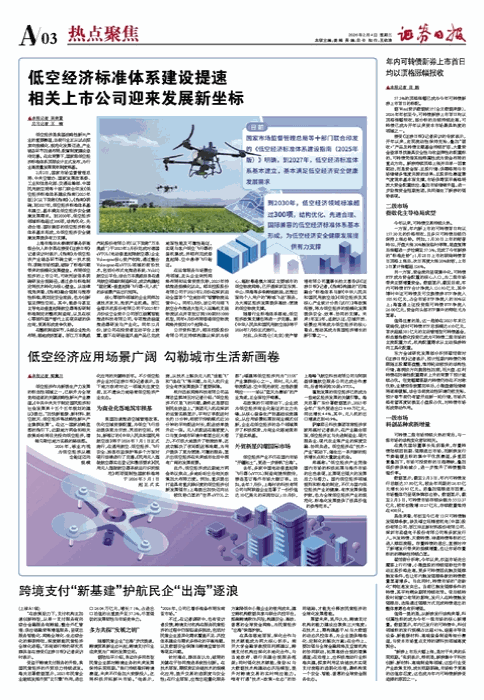 对此,众和昆仑(北京)资产管理有限公司董事长柏文喜告诉《证券日报》记者,《指南》构建的“四维融合”标准体系与新《中华人民共和国民用航空法》《低空经济及其核心产业统计分类(试行)》等政策衔接,将为低空经济的规模化发展提供安全、效率、协同的支撑。未来1年至2年,适航认证、空域开放、场景应用将成为低空经济的核心看点,推动其成为我国经济增长的新引擎之一。