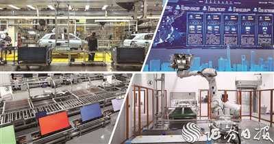 图①领克汽车成都工厂车间 图②商汤科技智能计算中心