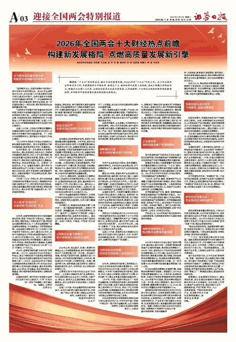 编者按:“十五五”是承前启后、继往开来的重要时期,而2026年是“十五五”开局之年。在今年全国两会即将召开之际,本报围绕资本市场改革、新质生产力、结构性货币政策工具创新、房地产新模式等财经热点,特邀多位全国人大代表、全国政协委员及权威专家学者,从宏观视野、产业前沿与制度创新等维度集智献策,共同探寻中国高质量发展的新动能与新路径。