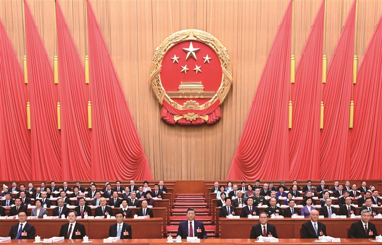 新华社北京3月5日电 第十四届全国人民代表大会第四次会议5日上午在北京人民大会堂开幕。全国人大代表肩负人民重托出席大会,履行宪法和法律赋予的神圣职责。
