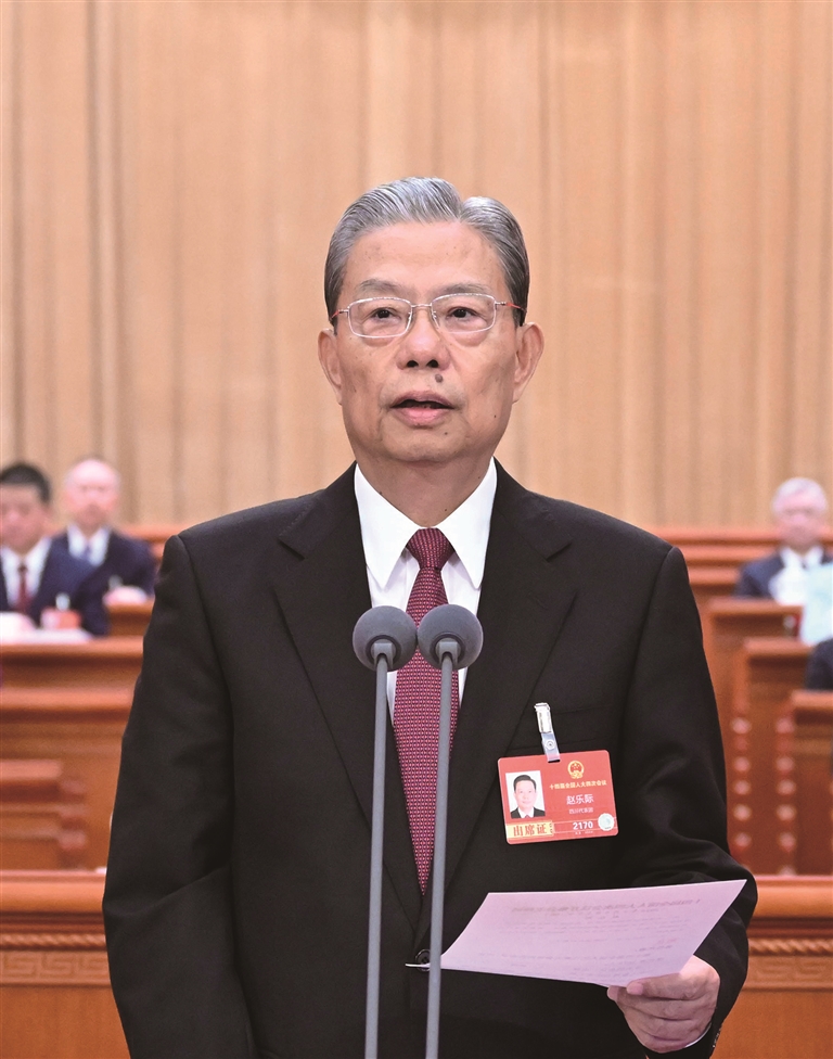 大会主席团常务主席、执行主席赵乐际主持大会。大会主席团常务主席、执行主席李鸿忠、王东明、肖捷、郑建邦、丁仲礼、蔡达峰、何维、武维华、铁凝、彭清华、张庆伟、洛桑江村、雪克来提·扎克尔、刘奇在主席台执行主席席就座。