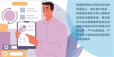 “鼓励各保险公司在依法合规的基础上,细分客户需求,探索提供满足不同人群需求的差异化服务举措。要注意区分合法增值服务和违法违规给予保险合同外利益之间的边界,严守合规底线,严禁为客户提供违反监管规定的增值服务。”湖北金融监管局表示。