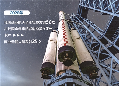 国家航天局数据显示,2025年,我国商业航天全年完成发射50次,占我国全年宇航发射总数54%。其中,商业运载火箭发射25次。全年入轨商业卫星311颗,占我国全年入轨卫星总数84%。融资方面,中关村领创商业航天产业联盟发布的数据显示,2025年中国商业航天领域融资总额约186亿元,同比增长32%。