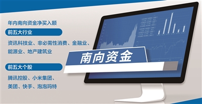 从整体态势看,南向资金布局呈现清晰的行业倾向性。具体来看,按恒生一级行业计,年内南向资金净买入额前五大行业为资讯科技业、非必需性消费、金融业、能源业、地产建筑业,分别为917.83亿港元、476.35亿港元、316.25亿港元、219.72亿港元、177.00亿港元。前五大个股为腾讯控股、小米集团、美团、快手、泡泡玛特,净买入额分别为513.72亿港元、233.09亿港元、76.88亿港元、62.82亿港元、61.08亿港元。