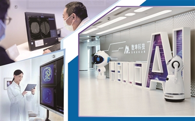 图①医生正在用医疗AI辅助诊疗 图②数坤科技位于北京的展厅 图③数坤科技AI辅助诊断智能体 公司供图