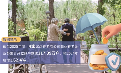 近日,4家试点商业养老金业务的养老险公司披露了去年业务情况。数据显示,截至2025年底,4家试点养老险公司商业养老金业务累计开立账户数达317.39万户,较2024年底增长62.4%。4家养老险公司累计发行商业养老金产品33只,较2024年底增加6只。