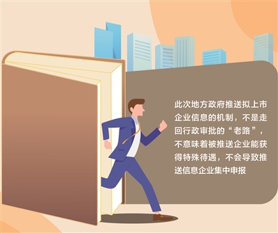 “试点开展上市企业地方推送信息工作,旨在充分发挥地方政府了解辖内企业实际情况的优势,协助提供企业信息。”宋向清表示,地方政府推送信息的企业并不享受“特殊通道”,也不会挤占其他企业正常的上市通道。