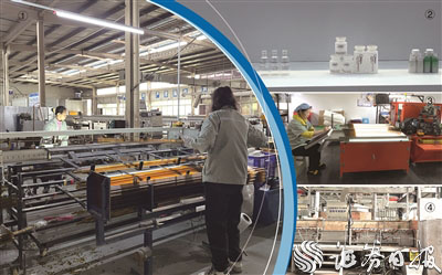 图③工人进行产品包装作业 图④“气改电”后的玻璃专用窑炉 冯雨瑶/摄