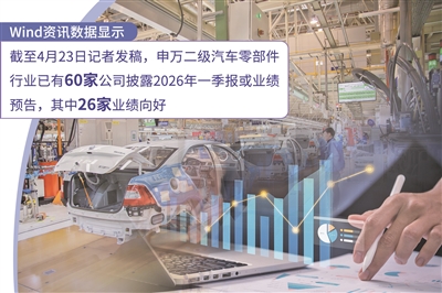 Wind资讯数据显示,截至4月23日记者发稿,申万二级汽车零部件行业已有60家公司披露2026年一季报或业绩预告,其中26家业绩向好。不同企业业绩表现分化明显,高增长与阶段性承压并存。