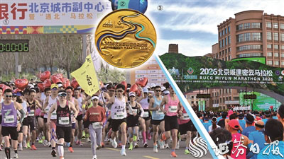 图①2026北京城市副中心马拉松赛事现场 图②2026密云马拉松奖牌 刘琪 杜雨萌/摄
